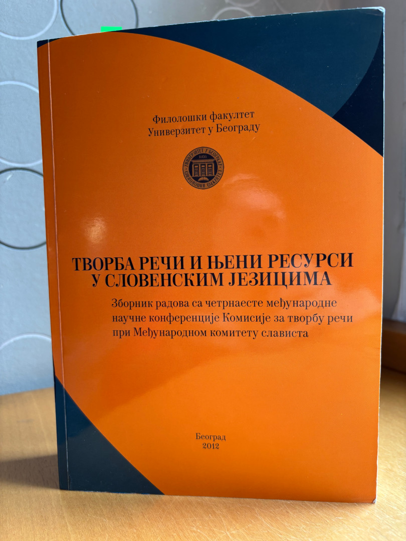1. Творба речи и њени ресурси у словенским језицима, зборник радова са четрнаесте међународне конференције Комисије за творбу речи при Међународном комитету слависта, главни уредник: Рајна Драгићевић, Београд: Филолошки факултет, Чигоја штампа, 2012. ISBN 978-86-6153-116-3
