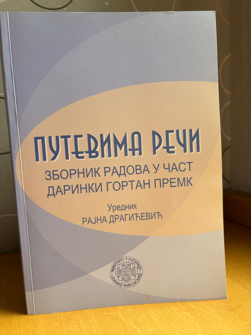 5. Путевима речи. Зборник у част Даринки Гортан Премк, уредник Рајна Драгићевић, Београд, 2017: Филолошки факултет Универзитета у Београду. Катедра за српски језик са јужнословенским језицима. ISBN 978-86-6153-464-5
